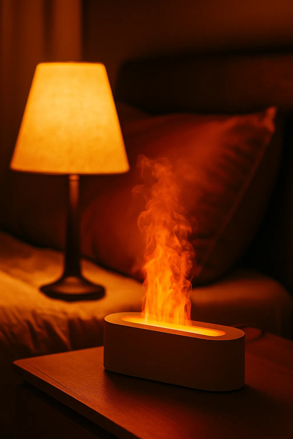 Tak! Efekt płomienia RGB w dyfuzorze DQ709 został zaprojektowany tak, by przypominał prawdziwy ogień. Dzięki dynamicznemu podświetleniu w 7 kolorach tworzy wyjątkowo nastrojową atmosferę – ciepłą, przytulną i relaksującą.