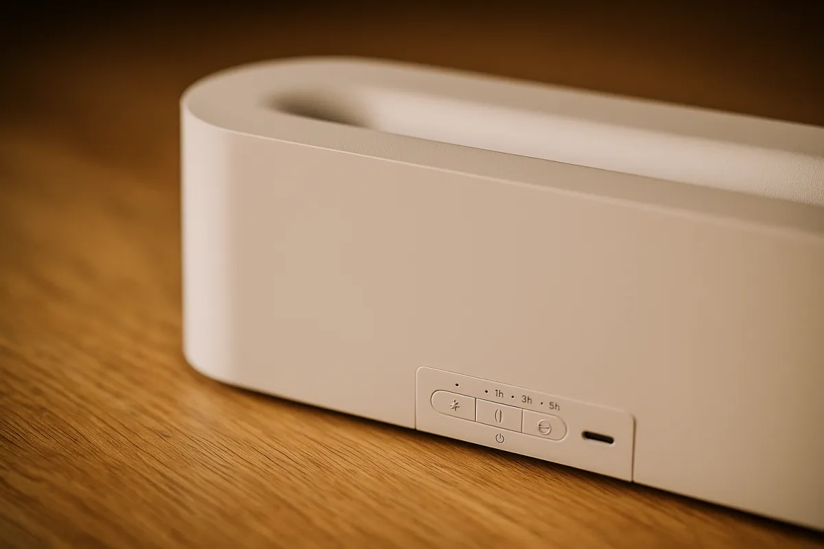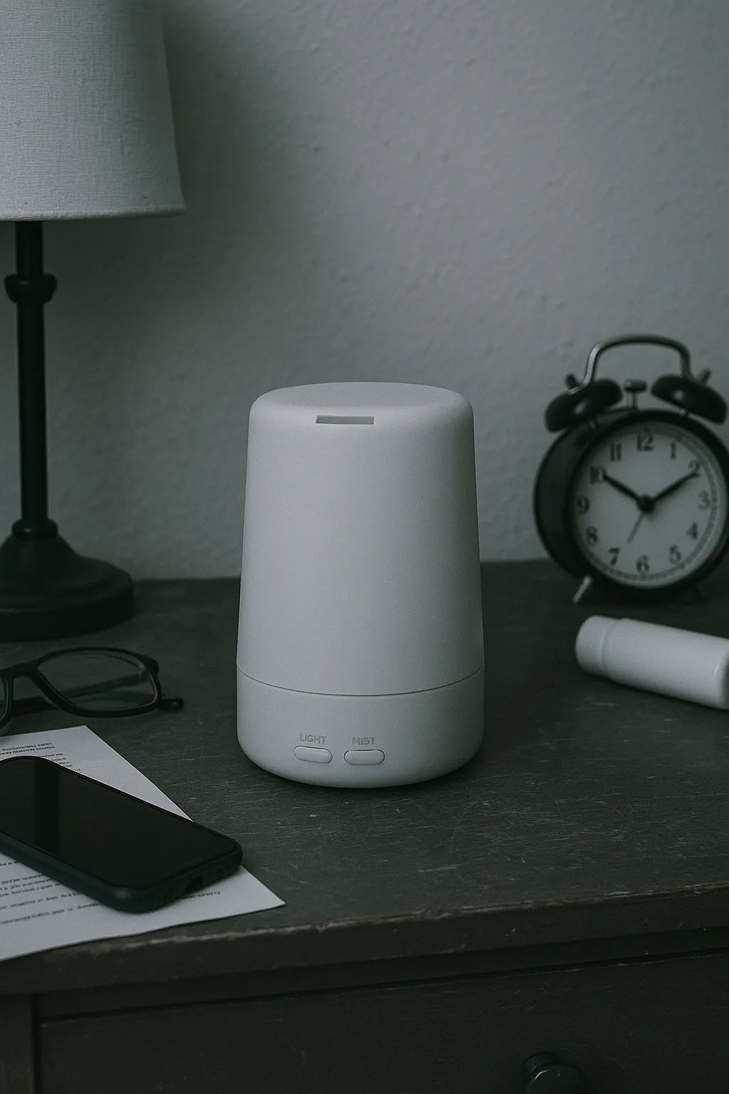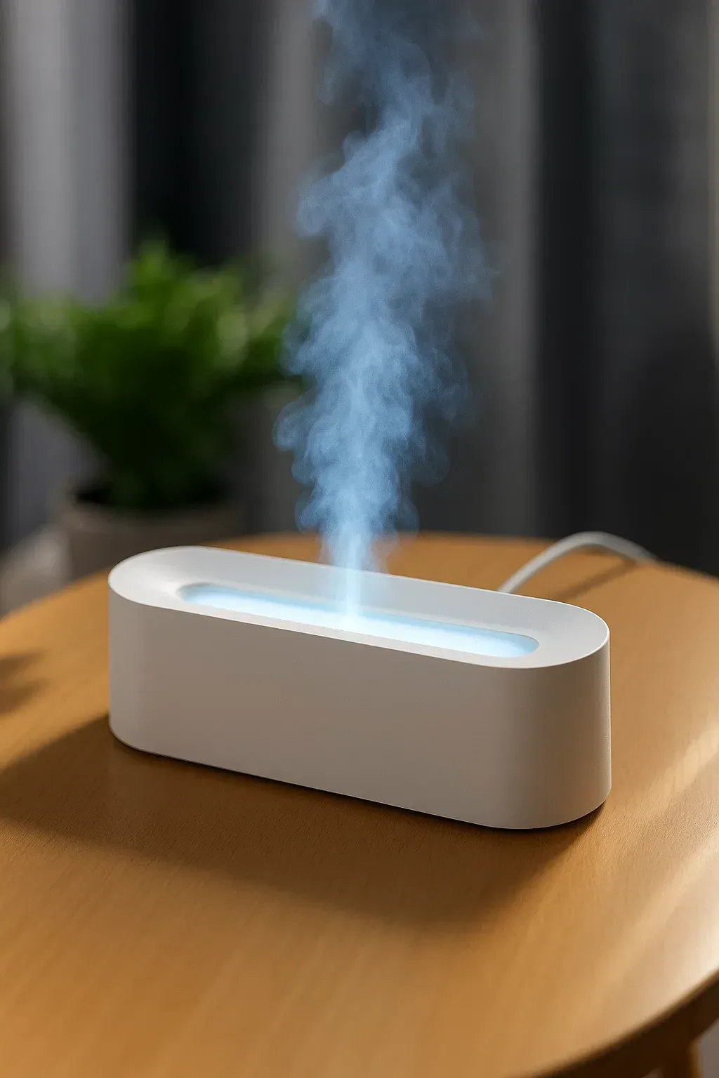 Dyfuzor łączy funkcję aromaterapii i lekkiego nawilżania powietrza. Nie zastępuje nawilżacza przemysłowego, ale w pomieszczeniach do 20 m² znacząco poprawia komfort oddychania.
